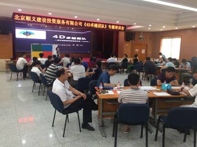 7月5日,北京順義建設(shè)投資服務(wù)有限公司工會(huì)利用一天的時(shí)間,組織公司中層及以上干部、后備干部,開(kāi)展了一次主題為4D卓越團(tuán)隊(duì)的專題培訓(xùn)活動(dòng),重在提高公司中層的團(tuán)隊(duì)管理意識(shí),加強(qiáng)團(tuán)隊(duì)建設(shè)。